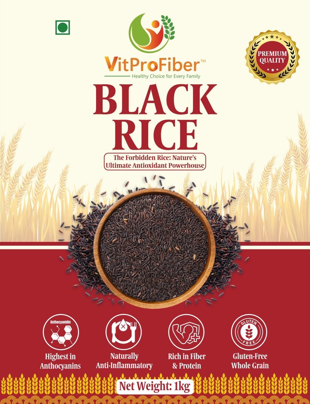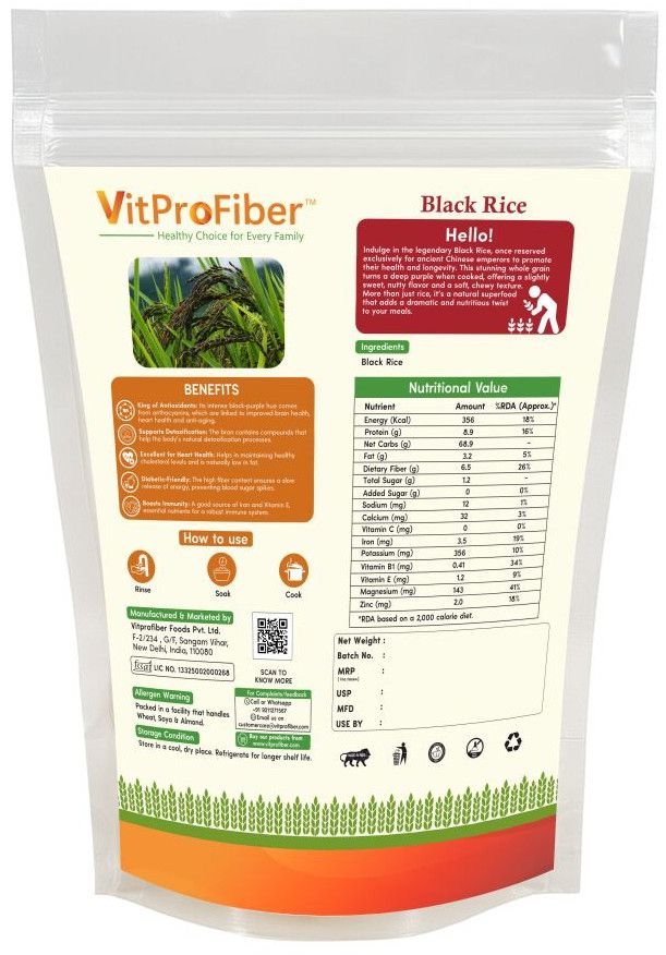 Title: VitProFiber Black Rice 1Kg | Forbidden Rice | Karuppu Kavuni Arisi | Nalla Biyyam | Kaala Chawal | Rich in Antioxidants & Fiber | Gluten-Free, Diabetic-Friendly Superfood | High Protein, Iron Rich, Low Fat Whole Grain