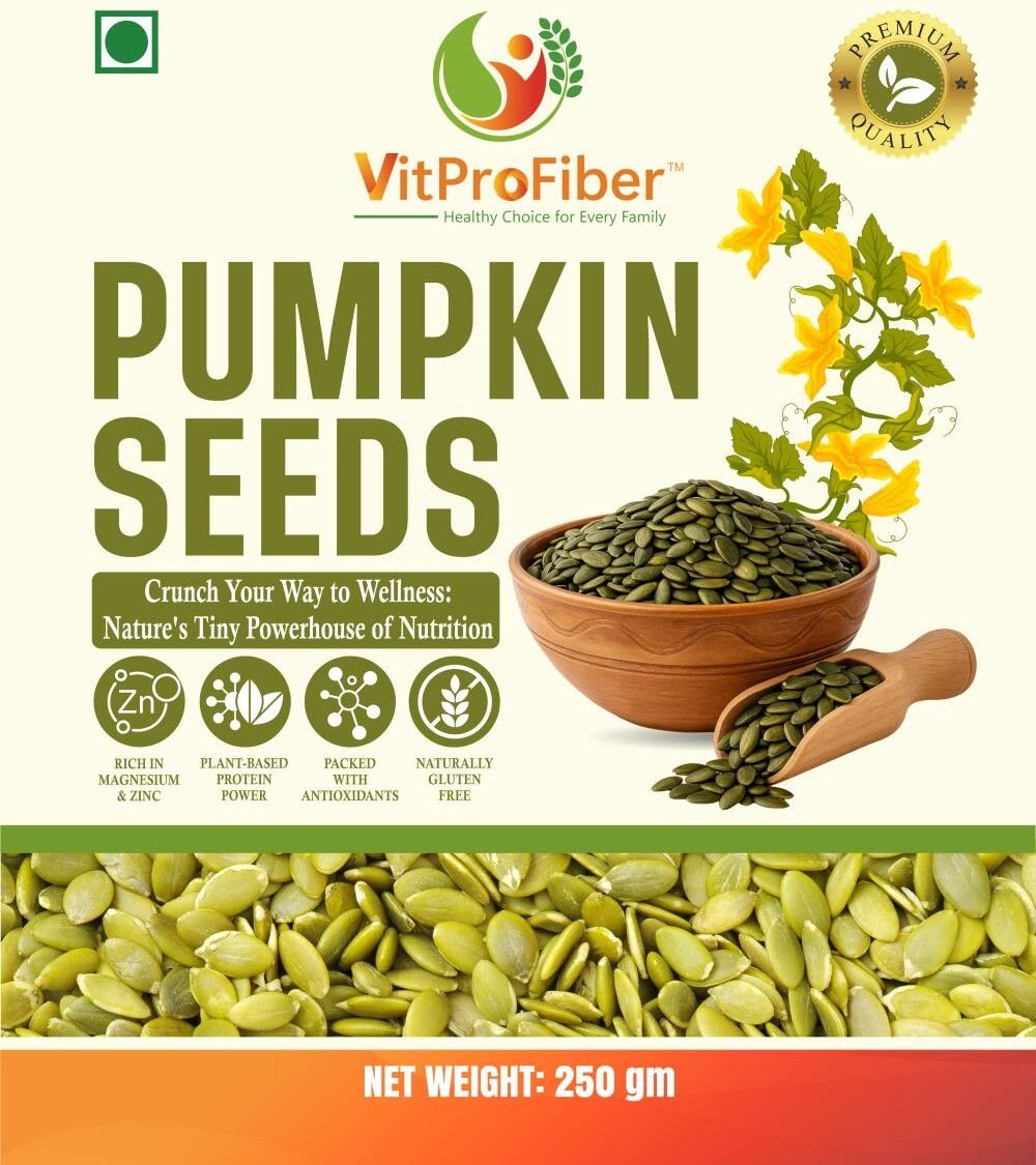 Title: VitProFiber Pumpkin Seeds 250 gm | Pepitas | Protein & Fiber Rich Superfood | Immunity Booster, Magnesium & Zinc Rich | Healthy Diet Snacks for Eating, Salads, Smoothies | Raw & Gluten-Free
