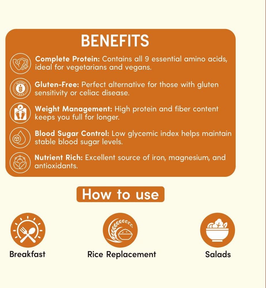 HIGH PROTEIN & COMPLETE AMINO ACIDS: Contains all 9 essential amino acids, making it a rare complete plant-based protein source. Ideal for muscle repair, growth and vegan/vegetarian diets—perfect for fitness enthusiasts and health-conscious families.