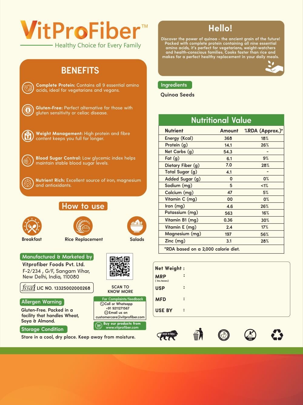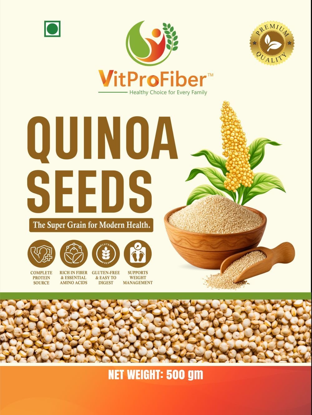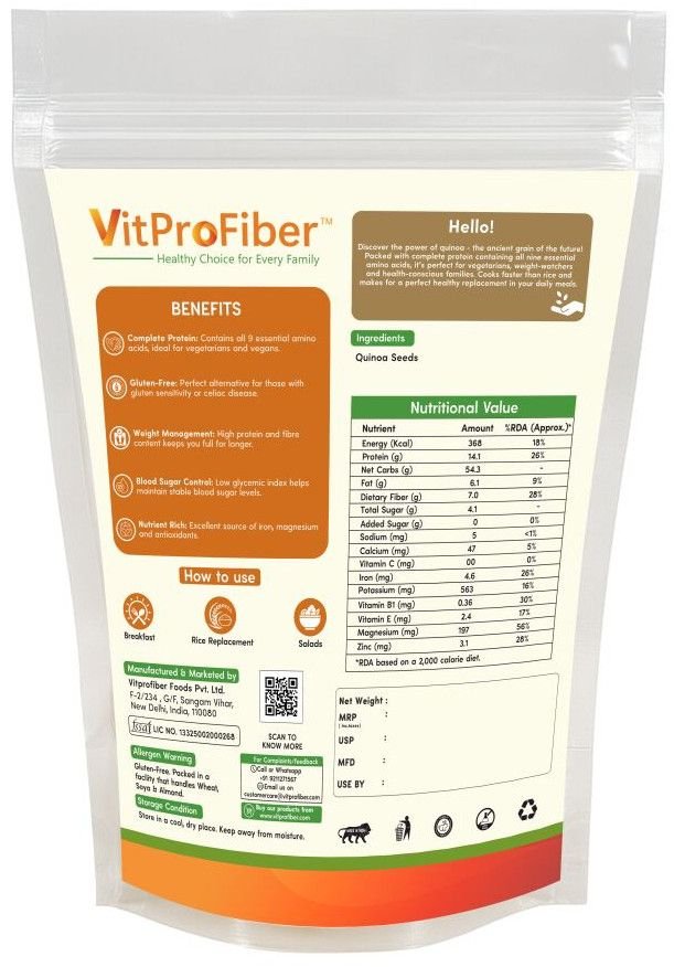 Title: VitProFiber Quinoa Seeds 500 gm | Gluten-Free, High Protein & Fiber Superfood | Best for Weight Loss, Diet Food & Weight Management | Whole Grain White Quinoa for Breakfast, Salads & Healthy Meals