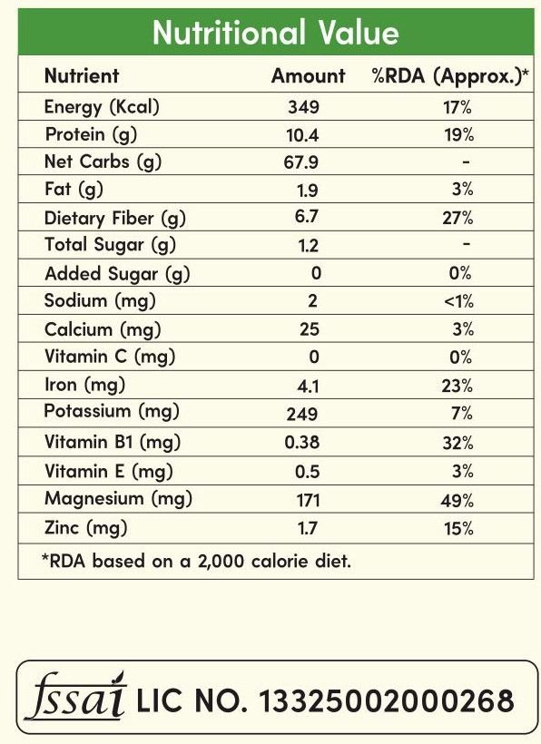 Jowar is a rich source of iron, phosphorus, potassium and antioxidants. It contains more protein and fiber than most common grains, supporting overall vitality and wellness.