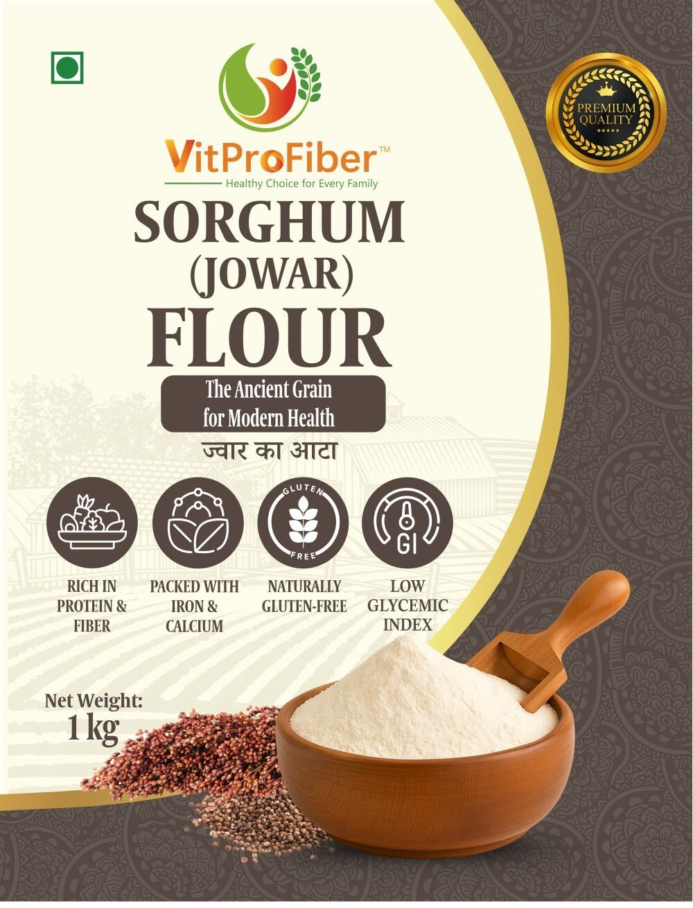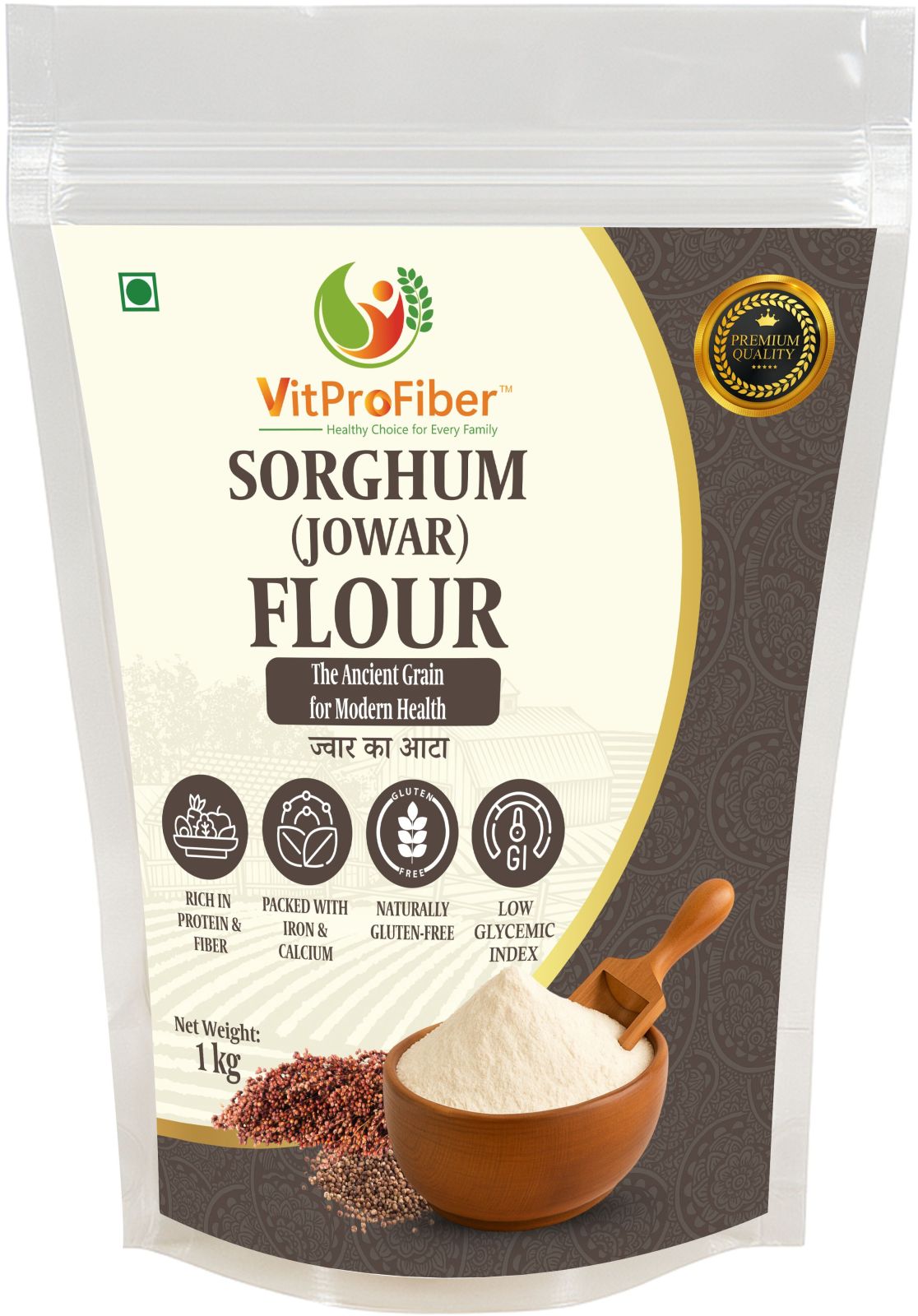 Title: VitProFiber Premium Sorghum Flour 1 Kg | Gluten-Free Jowar Atta | High in Protein & Fiber for Weight Loss | Perfect for Soft Rotis, Baking & Easy Digestion | No Additives & Preservatives | Jonna Atta | Sorghum Millet Flour